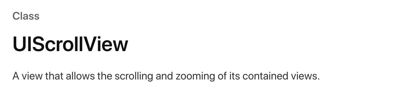 애플 공식문서에서 말하는 UIScrollView는 포함된 뷰의 스크롤링하고 줌잉을 허락해주는 뷰라고 합니다.