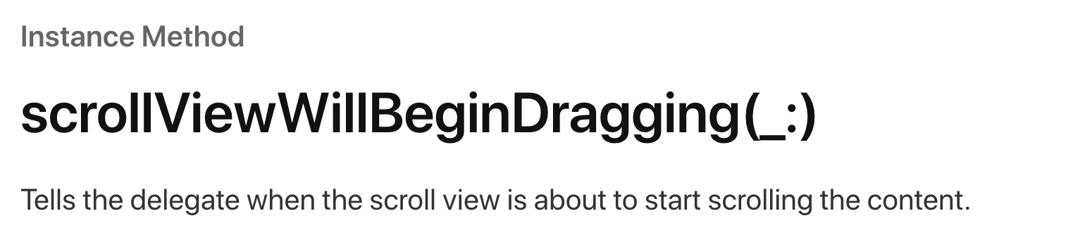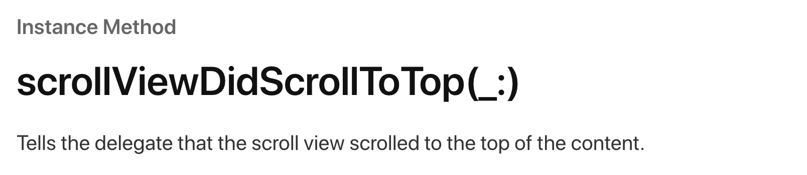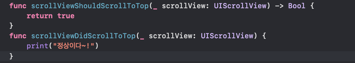 이 메서드는 앞에서 포스팅한 scrollViewShouldScrollToTop(_:) 메서드와 같이 콜라보를 해보겠습니다.
