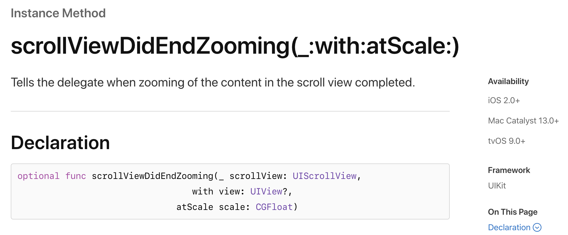 이제는 델리게이트 메서드에서 스크롤링이 아니라 zomming에 관련된 메서드를 포스팅하려고 합니다.