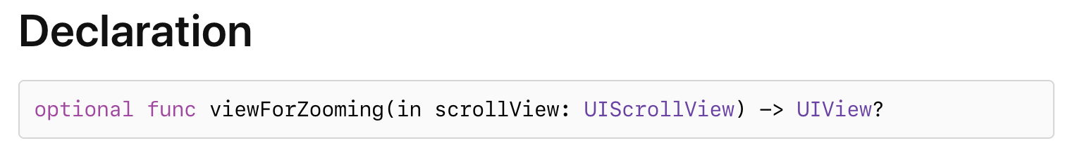 UIVIew를 리턴하게 되는데 해당 view는 줌을 할 때 UIView객체를 리턴해주면 됩니다.