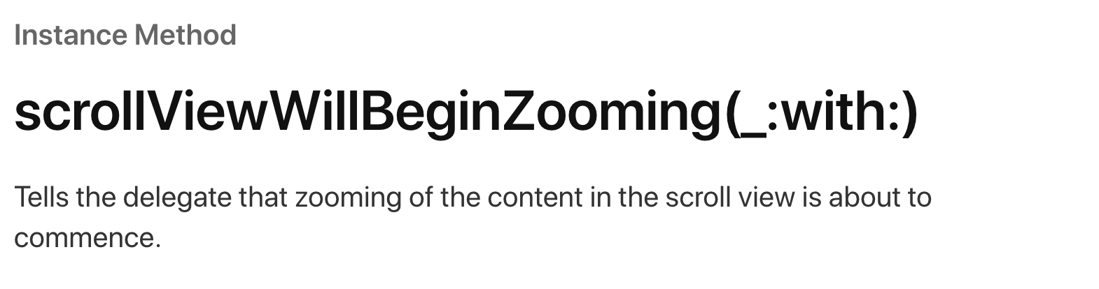 이 메서드는 스크롤 뷰에서 콘텐츠 확대/ 축소가 시작되려고 할 때 (딱 시작할 때) 델리게이트에게 알려주는 역할을 합니다.