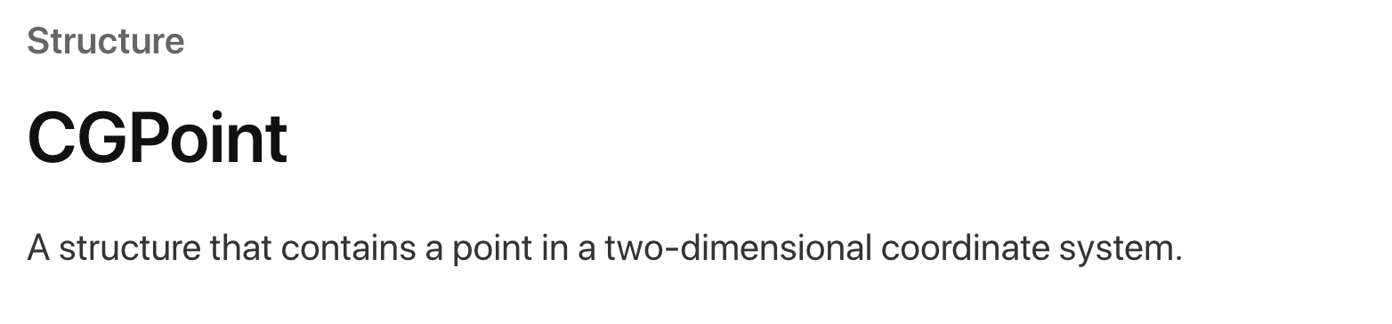 애플 공식문서에 따르면 구조체의 형태로 두 개의 2차원 좌표계 x, y를 포함하고 있습니다.