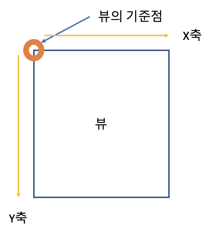 그럼 뷰의 기준점이 어딘가 많이 궁금해 하실수 있는데 뷰의 기준점은 왼쪽의 꼭지점을 말하는 것입니다.
