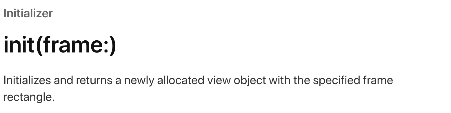 frame은 이렇게 프로퍼티로 설정을 할수도 있고 이니셜 라이저를 통해서는 설정할 수 있어 인스턴스를 생성하는 동시에 frame속성을 설정을 할 수 있습니다.