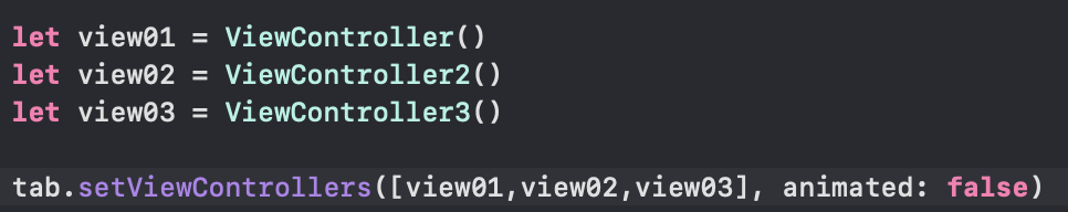. setViewController메서드는 탭 바 컨트롤러의 루트 뷰 컨트롤러를 설정하는 것으로 해당하는 뷰 컨트롤러를 array형태로 세팅을 해 설정을 해주면 됩니다.