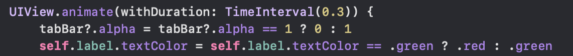 단 이 애니메이션 효과는 쪼갤 수 있는 단위 형태 이어야 합니다. 예를 들어서. isHidden같이 true, false는 더 이상 쪼갤 수 없는 것입니다.