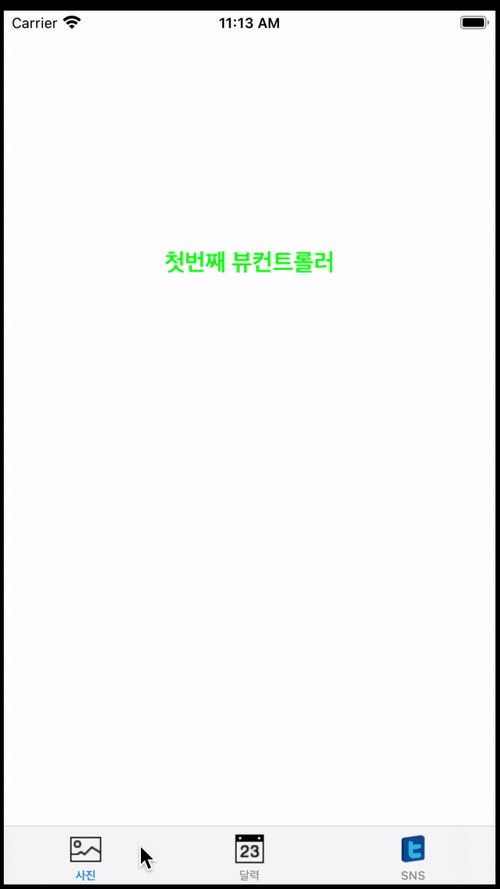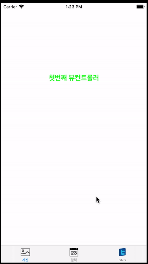 첫 번째, 두 번째, 세 번째 탭 뷰 컨트롤러에 label을 추가해 몇 번째 뷰 컨트롤러 인지 표현해주고 탭 바 아이템에 이미지 넣어주고 탭의 뷰 컨트롤러 아무거나 탭을 했을 때 탭 바가 사라지게 구현을 해보겠습니다. :)