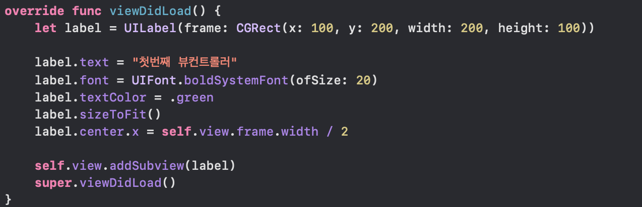 . center.x 속성은 라벨의 중앙값 x값을 해당 뷰의 넓이의 딱 중간으로 설정을 해줬습니다.