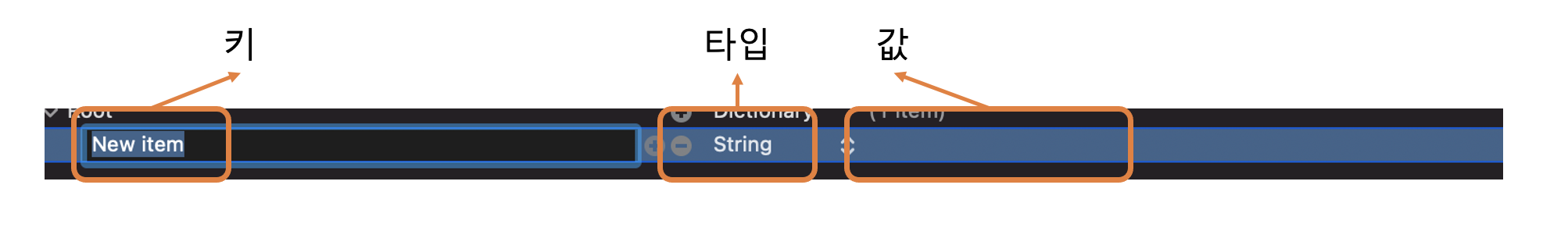 3. 이제 해당 프로퍼티 리스트에 아래와 같은 프로퍼티 리스트 데이터들을 넣어주겠습니다.