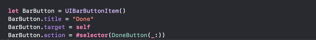 - space라는 상수에 UIBarButtonItem 객체를 넣어줬는데 이것은. flexibleSpace로 툴바에 버튼을 맨 오른쪽으로 밀어주기 위해 공간을 넣어 준 것입니다.