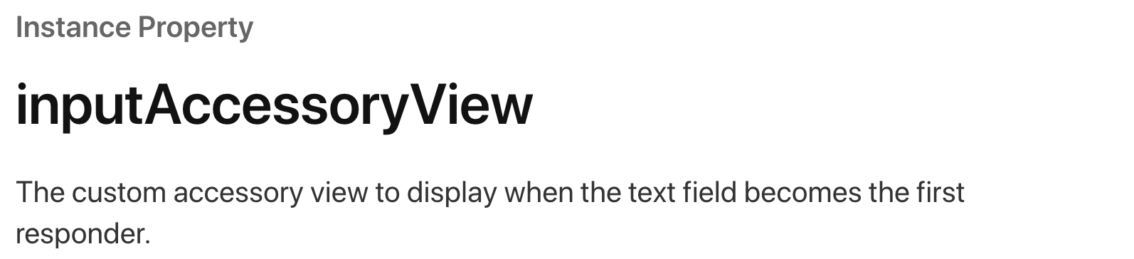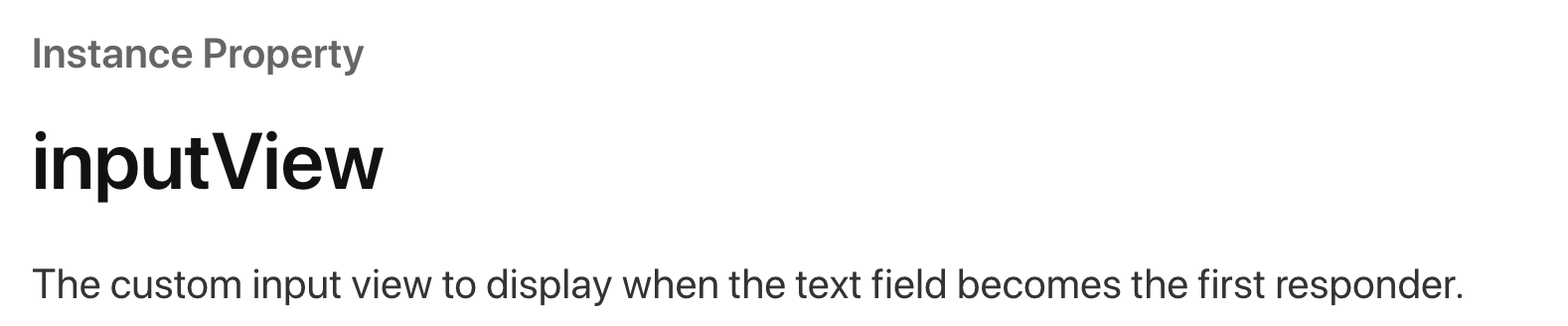 - 애플 공식 문서에 따르면 텍스트 필드에 최초 응답자가 되면 해당 프로퍼티에 들어간 커스텀 뷰를 띄어주게 됩니다.