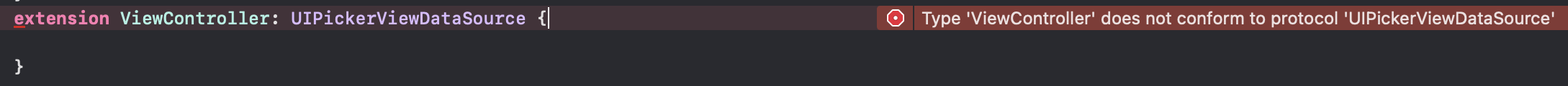 9. UIPickerView의 데이터 소스를 선언해주기 위해서 extension으로 프로토콜을 선언해주었습니다.