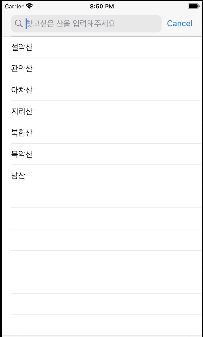 이 SearchBar는 iOS8이후로 새로 등장한 UISearchController입니다.