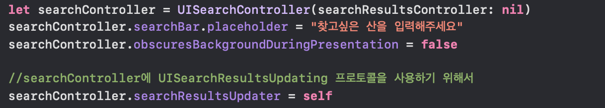 8. 이 함수 내에 UISearchController을 정의해주겠습니다.