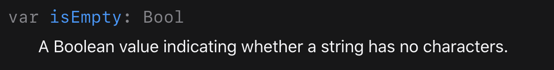 공식문서에서는 문자열에 문자가 있는 없는지 인식해서 Bool값으로 알려주는 프로퍼티라고 나와있습니다.