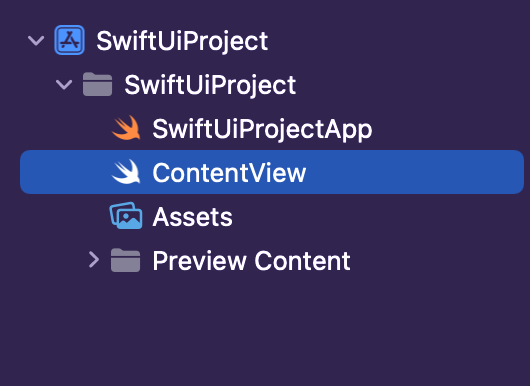 이렇게 프로젝트를 생성하게 되면 Stroyboard는 없고 아래와 같이 ContentView와 애셋 카탈로그가 추가된 것을 볼 수 있습니다.