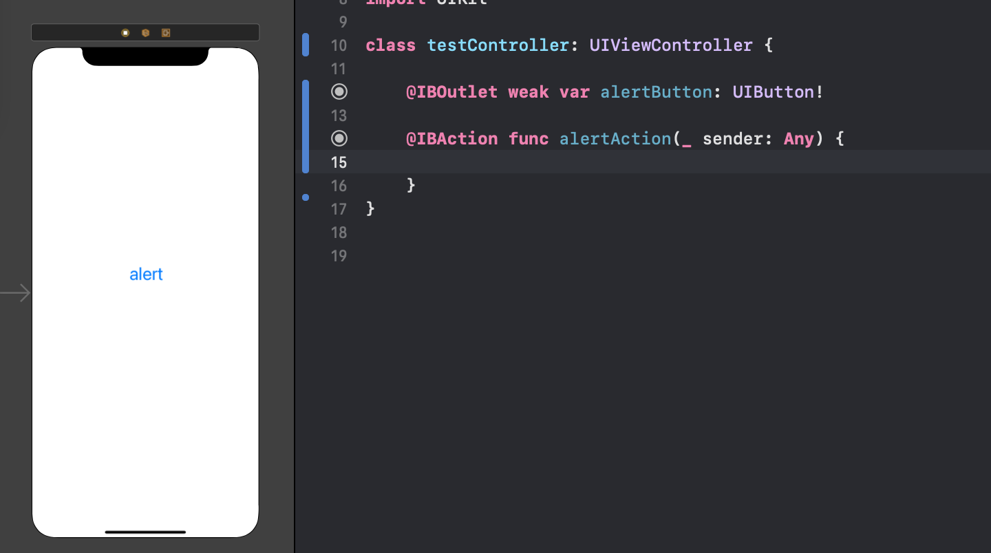 - 버튼의 액션 메서드를 통해 클릭했을 때 alert창을 띄우게 UIAlertController객체를 설정해 주겠습니다.