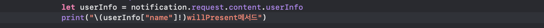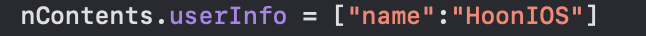 - notification.request.content.userInfo는 notification의 UNNotificationRequest객체에 등록한 UNMutableNotificationContent객체의 userinfo 속성을 가져오는 것입니다.