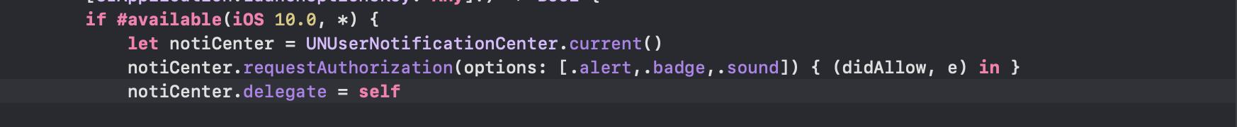 - notiCenter.delegate = self로 알림 센터에 뭔가 이벤트가 발생하면 앱 델리게이트인 나한테 말해라고 설정을 해준 것입니다.