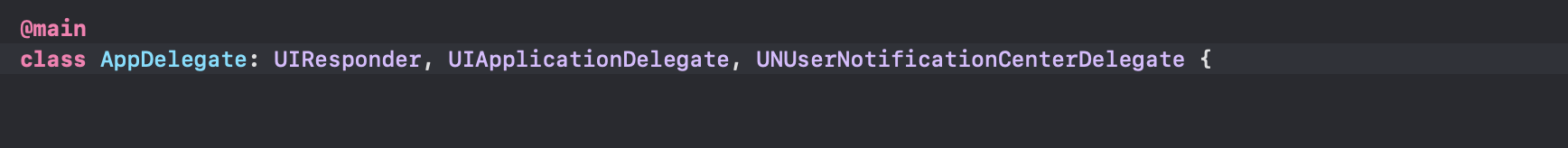- AppDelegate클래스에 UNUserNotificationCenterDelegate 프로토콜을 추가합니다.