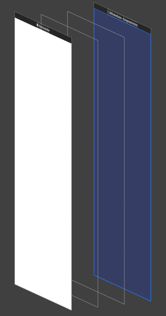 왼쪽에 있는 파란색 층이 UIWindow층이 됩니다. 오른쪽 층을 보시면 UIWindow는 뷰 컨트롤러, 뷰를 포함하고 있습니다.