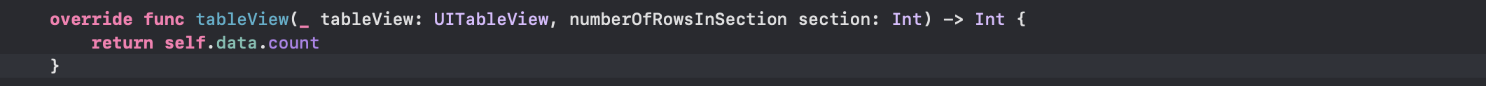 - tableView(:numberOfSections:)는 해당 테이블 뷰의 크기를 리턴해주는 것으로 UITableViewDataSource에 구성되어있습니다.