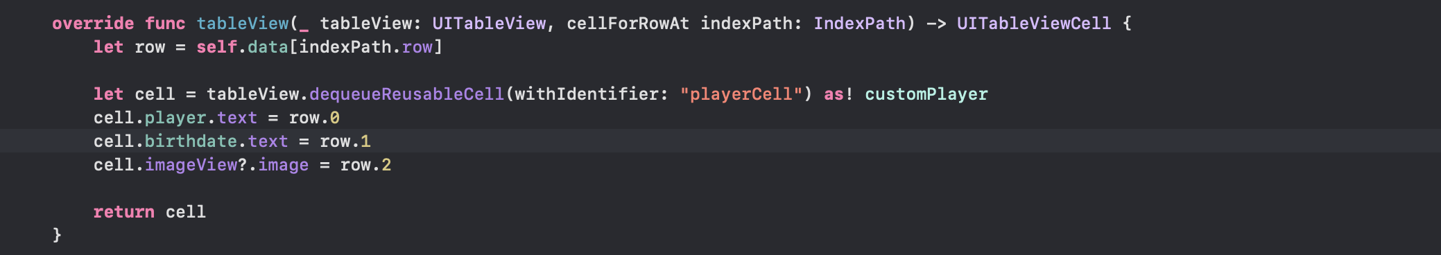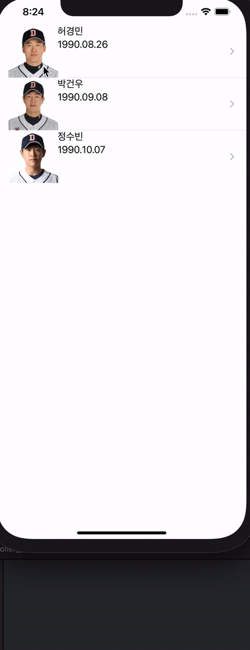 - 여기서 중요한 점은 테이블 뷰셀을 커스텀마이징해줬기 때문에 customPlayer로 캐스팅을 해줘야 합니다.