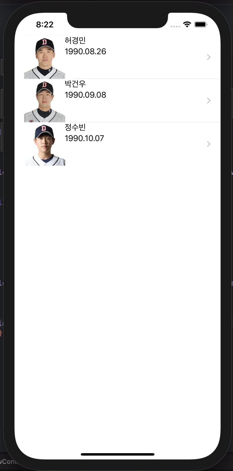 꾸미 지를 않아서 그냥 허접하네요.... ㅎㅎㅎ 그래도 테이블 뷰 컨트롤러를 공부한 것이니 값이 잘 나타내는 것만 확인하고 넘어가겠습니다.