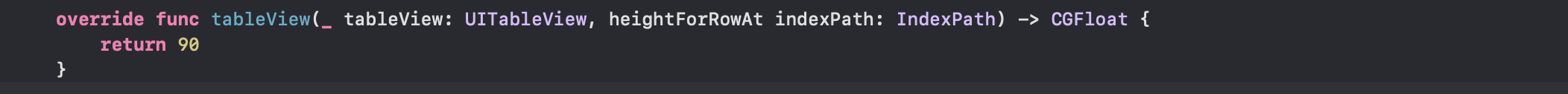 - 테이블이 여러 개면 테이블에 따라 다르게 잡아줄 수도 있고 indexPath인자값을 통해 테이블 뷰 셀에 따라 테이블 뷰 셀의 높이를 다르게 잡아줄수도 있습니다.