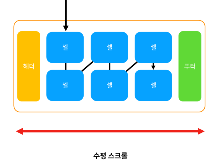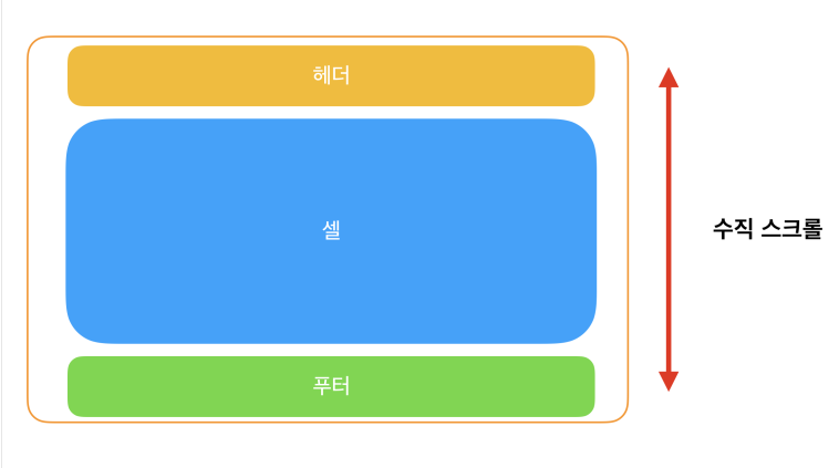 - 셀이 하나가 있고 위아래로 헤더 푸터가 있는 방식입니다.