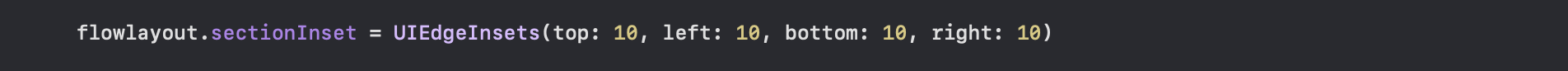 - 셀들과 safeArea사이의 간격을 설정하는 것으로 UIEdgeInsets메서드를 사용합니다.