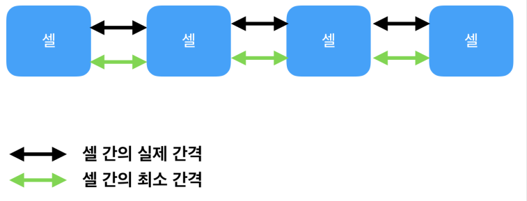 (좌, 우, 위, 아래를 설정해줄수 있습니다.) - 필요한 경우 셀들 간의 좌우 최소 간격, 위아래 최소 간격을 설정해줍니다.