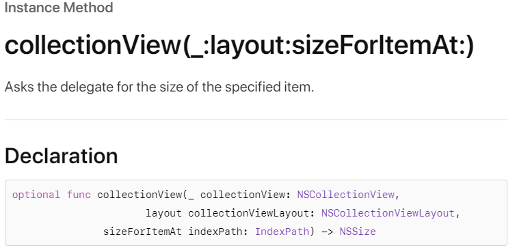 이제 세 번째 방법인 collectionView(_:layout:sizeForItemAt:)에 대해 알아보겠습니다.