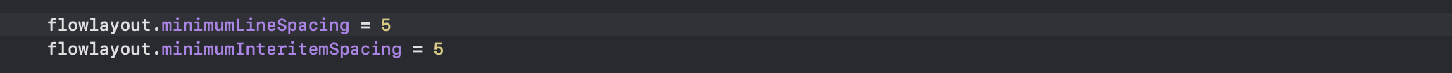 - . minimumInteritemSpacing 속성은 행에서 아이템 간의 최소 간격을 설정해준 것입니다.