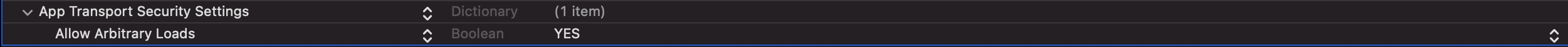 이렇게 Boolean값에 YES를 넣어주면 ATS설정이 완료된 것입니다.