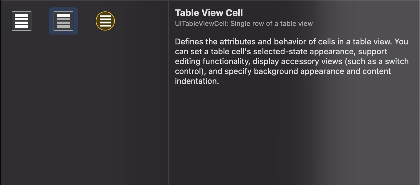 - 오브젝트 라이브러리에서 Table View Cell을 찾아서 해당 테이블 뷰에 넣어줘야 합니다.