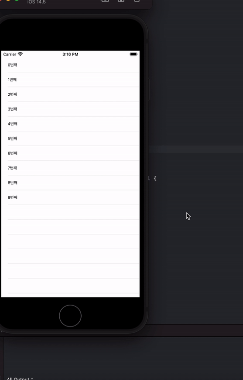 델리게이트 메서드로는 간단하게 몇 번째 줄인 지 출력을 해주는 것으로 구현을 해줬습니다.