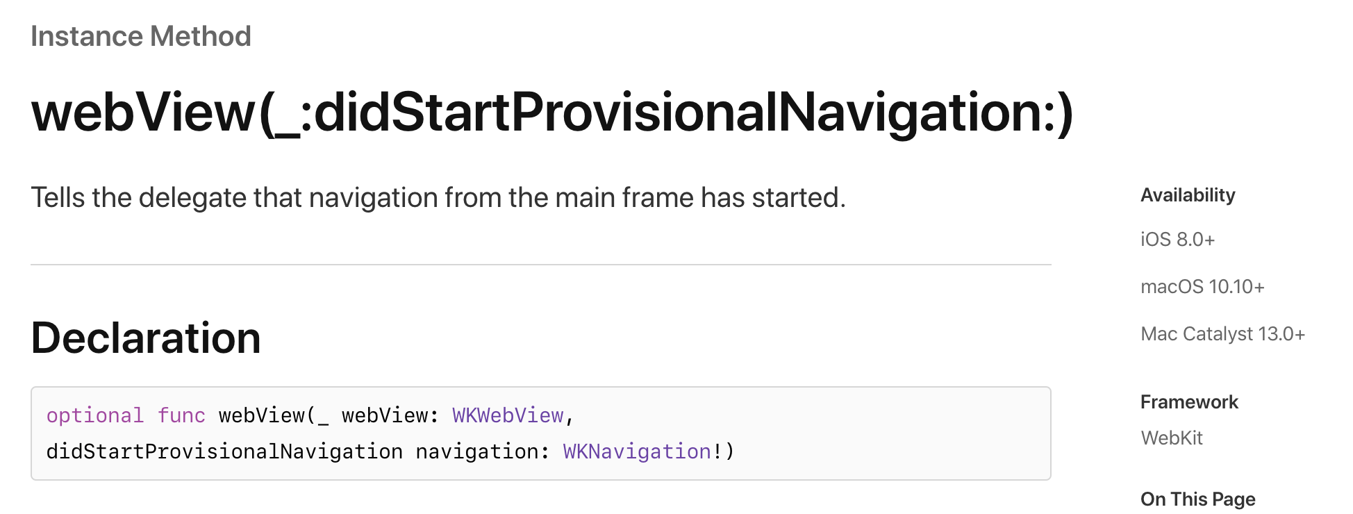 먼저 WKNavigationDelegate의 메서드에 대해 알아보겠습니다.