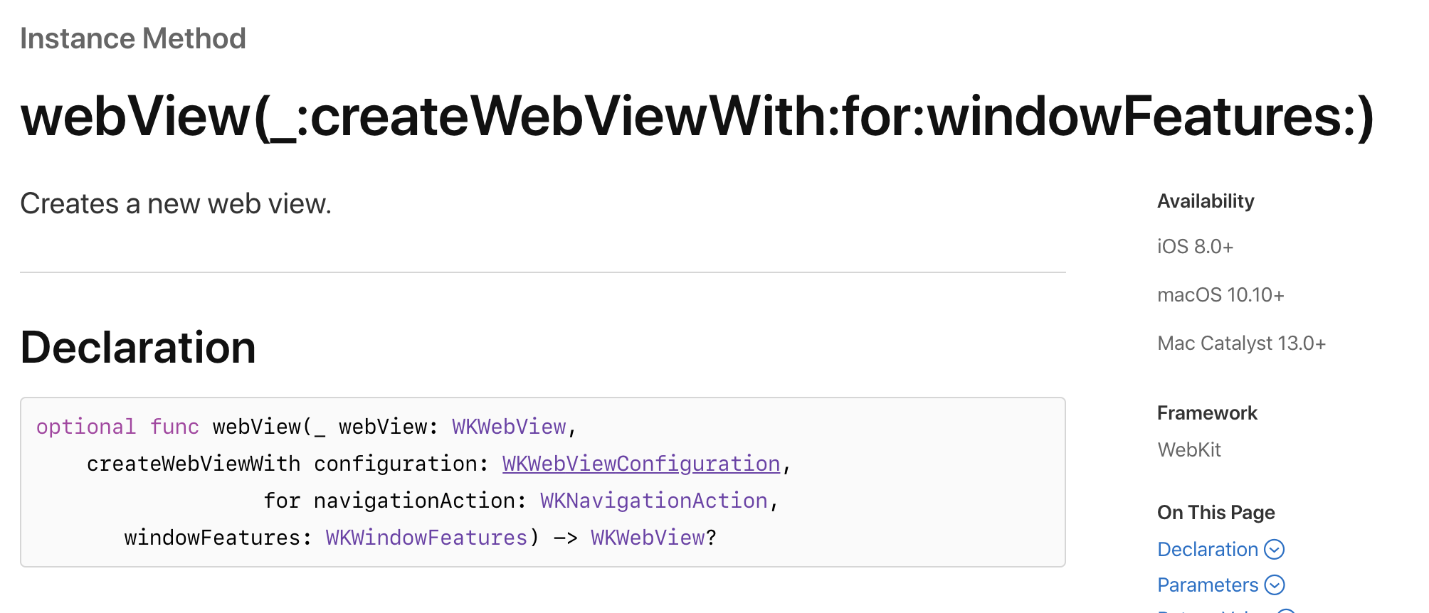 - webView(_:createWebViewWith:for:windowFeatures:)